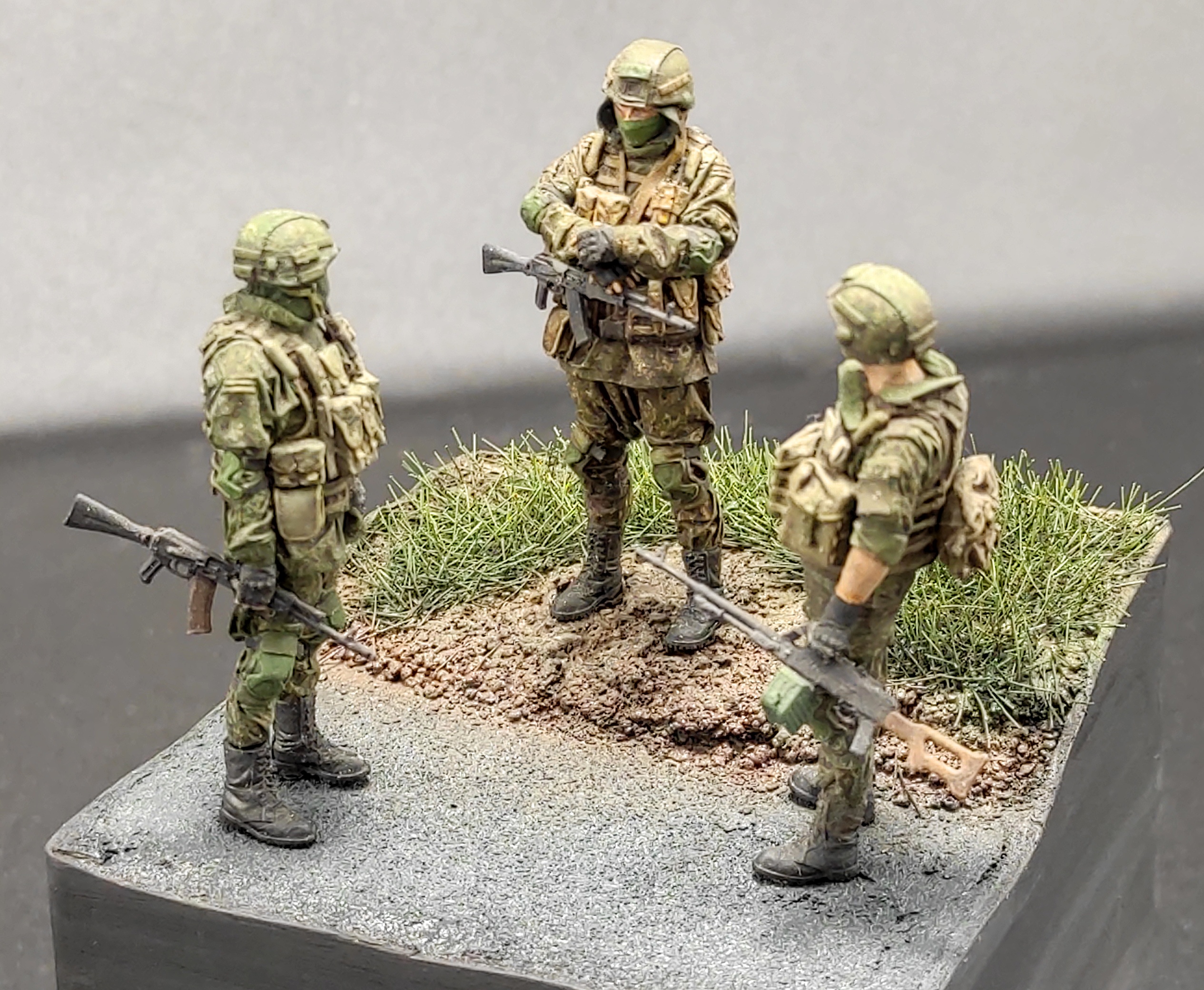 Добрый день. Представляю свою вариацию на тему затишья а фронте СВО. Миниатюры от Live Resin, подставка сделана из утеплителя и самодельных смесей, трава из флока. В росписи фигур использовал как акрилы Pacific 88, так и Vallejo. Прошу сильно не ругать, первый более или менее серьезный опыт в миниатюрах.