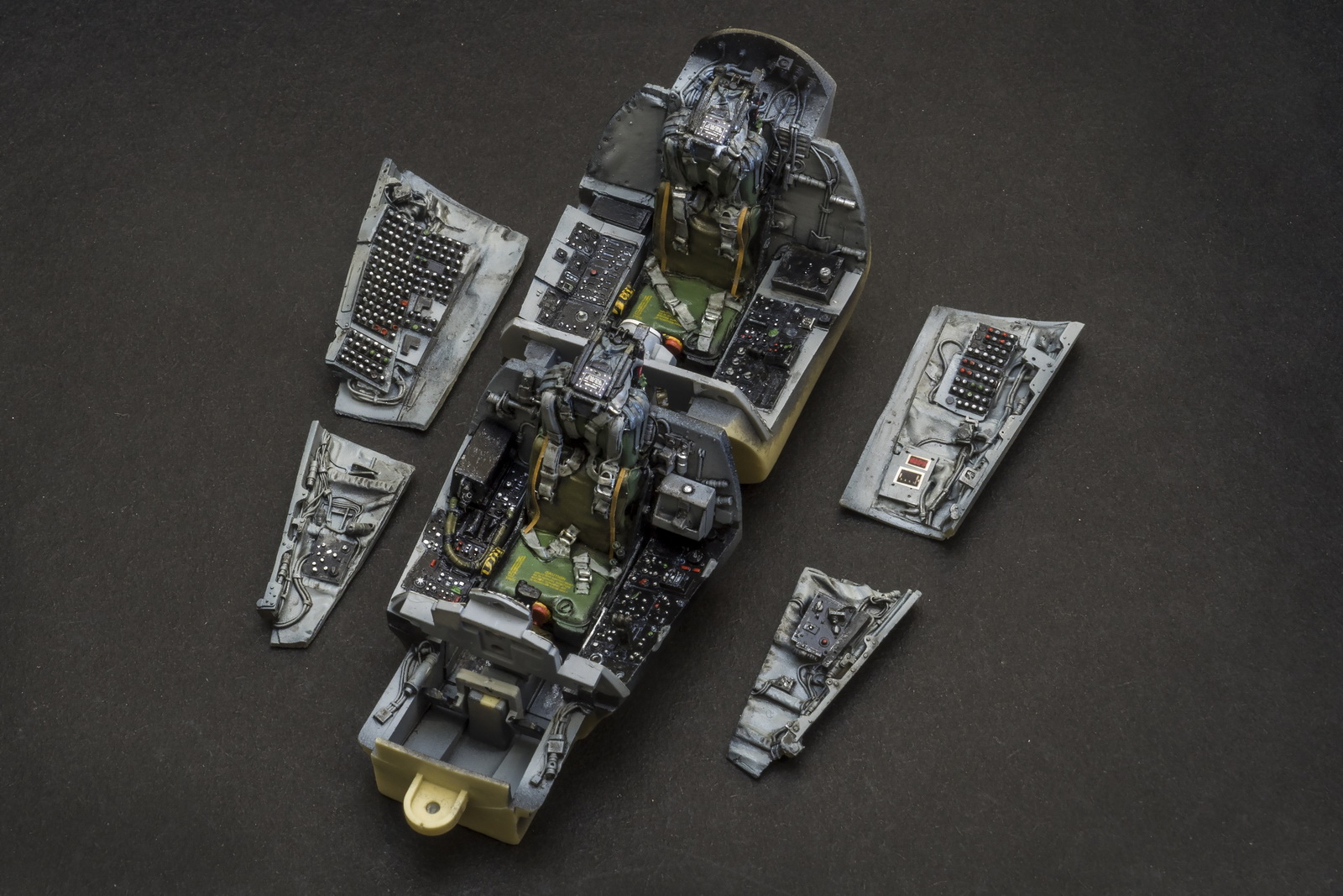 Сегодня я хочу рассказать о модели Фантома F-4D фирмы Tamiya в 32 масштабе. История этого самолёта такова — F-4C воевал во Вьетнаме, сбил в феврале 1968 МиГ-17, затем в мае 1972 МиГ-21. Были нанесены 2 звезды на створках канала ВЗ справа и слева по 1 на каждой стороне. Окраска стандартная для того периода. Затем служба в США, переоборудование в модификацию F-4D, изменена окраска на серо-зелёную. Затем перекрашен в серые цвета. Закончил службу в 1989, установлен на постаменте. Работу начал с кабины, использовал смолу — фирму не помню, коробка не сохранилась, в инструкции стоит номер CS32042, приборные доски от Квинты — раскрасить так смолу нереально. Кабина сделана неплохо, больших замечаний нет. Для фюзеляжа использовал печать 3D модель Тамии достаточно старая, не лишена недостатков. Заменил обводы задней части фюзеляжа, переднюю нишу. Сопло и форсажные камеры заменил на смолу от Эдуарда, посадочный гак тоже с набора Эдуард. Декали были от фирмы Картограф.