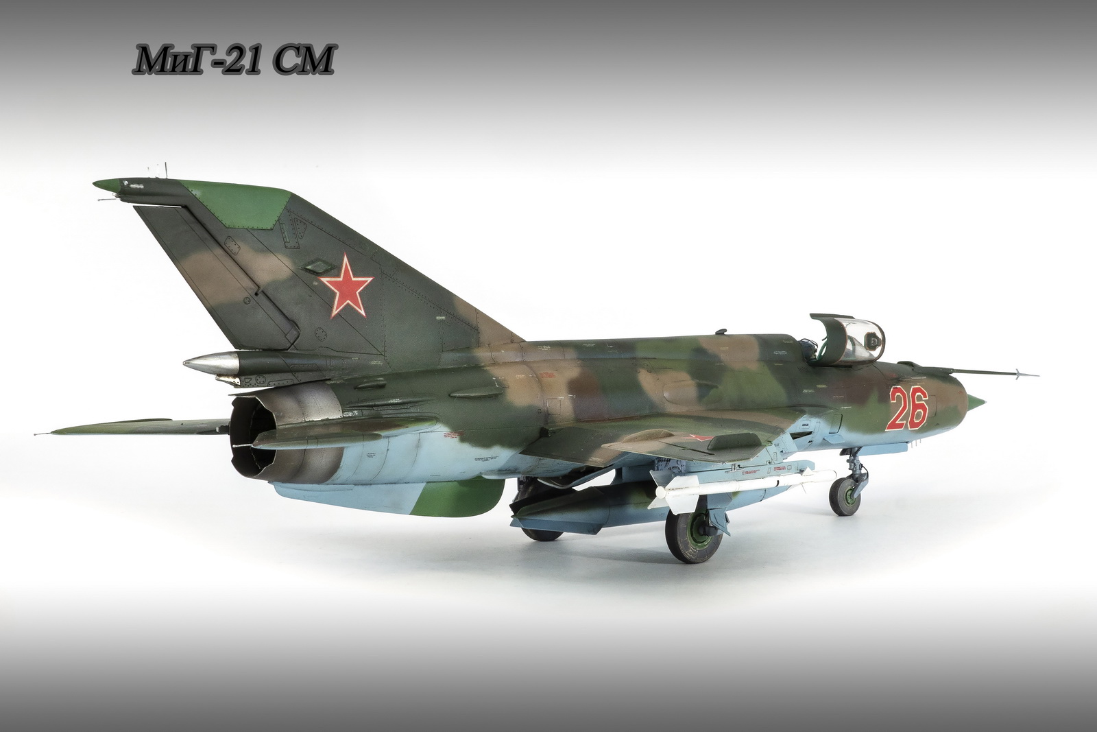 Модель МиГ-21СМ фирмы Трумпетер в 32 имеет недостатки, которые я планирую устранить в следующей работе. Эта сделана без больших доработок, но с дополнениями. Посадил пилота в кабину, что я не делаю обычно — считаю, что зря... Красил по фото , краски как всегда автомобильные.